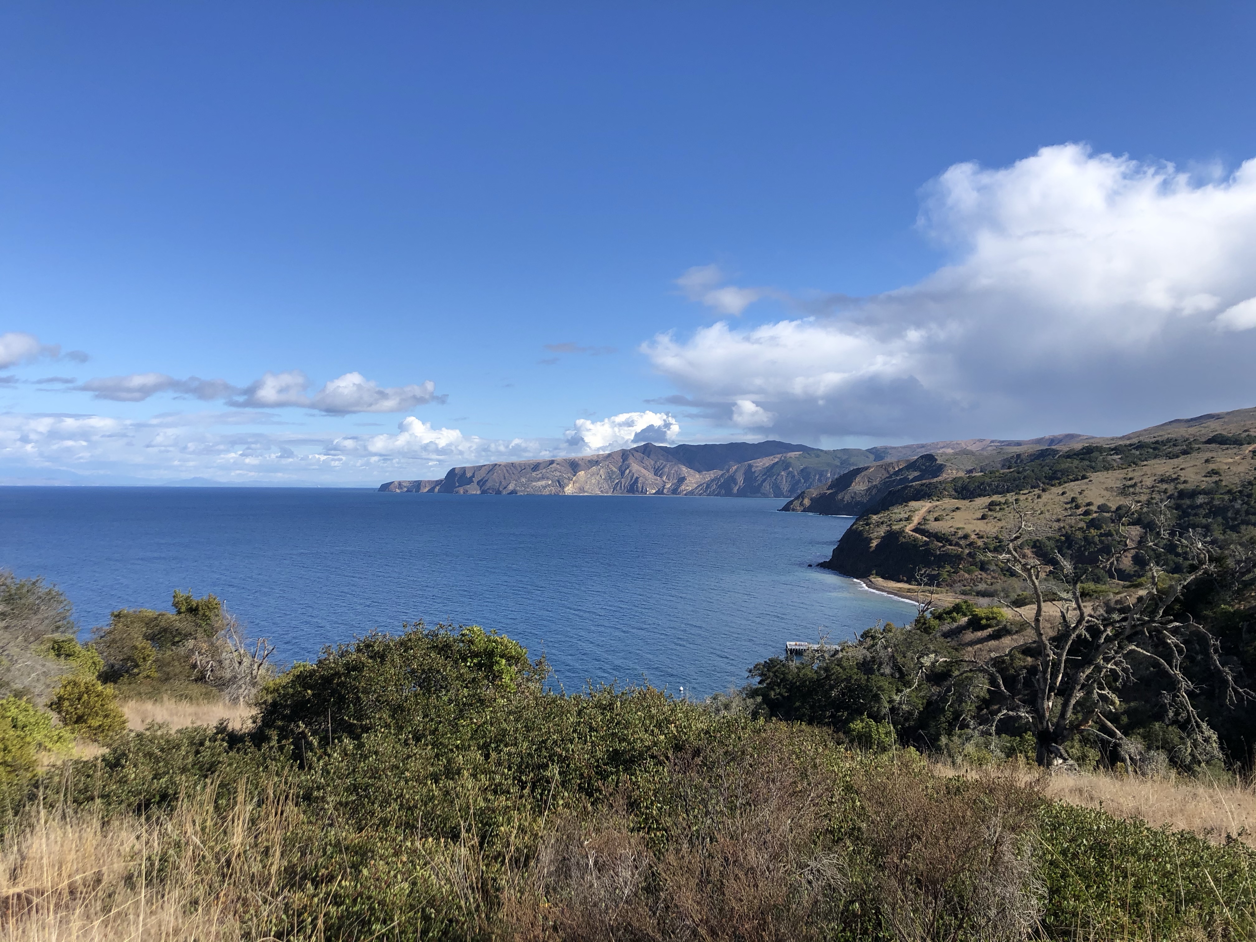 We arrived at Prisoner’s Harbor on Santa Cruz Island. We decided to do a guided hike to Pelican Bay which is in nature conservancy land. During the hike we learned the story behind Prisoner’s Harbor: Mexico decided they didn’t want Spain or any other country to have the islands off the coast of California. So Mexico sent up their burliest prisoners and banditos to the Channels Island to stake claim of the islands. They left the prisoners with a small herd of cattle and some tools to survive off of. The prisoners obviously wanted to escape so they cut the hide off the cattle and made boats to sail off the island. But because the hides were freshly cut the blood attracted sharks which ate all the prisoners. And that’s how the harbor got it’s name.