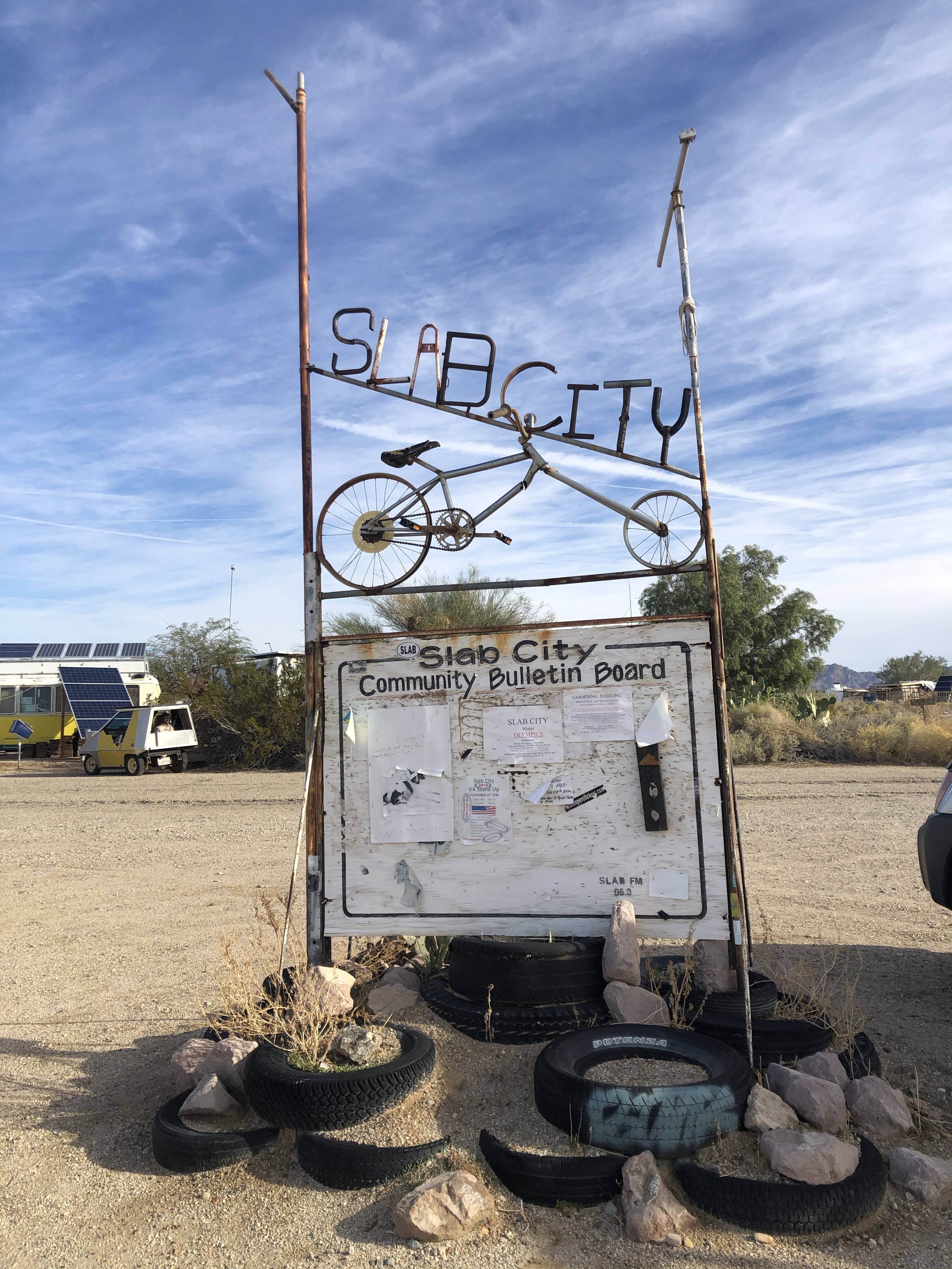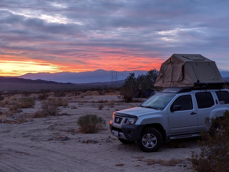 After the hike, we drove down to Slab City/Salvation Mountain as that was a place on both our lists that we wanted to check out. When we arrived, it was already dark, so we did a quick drive around the area and then set up camp near the entrance to the city.