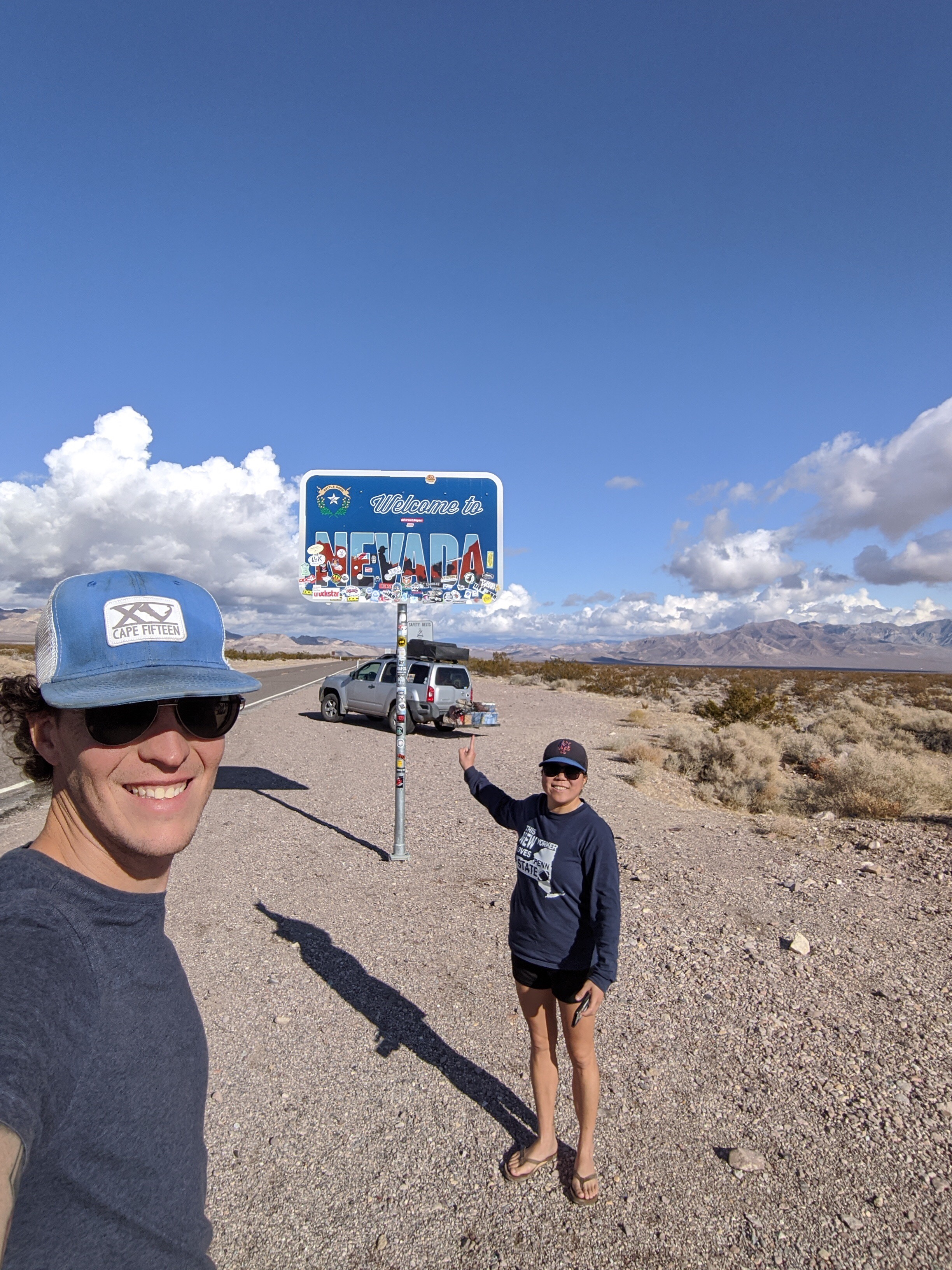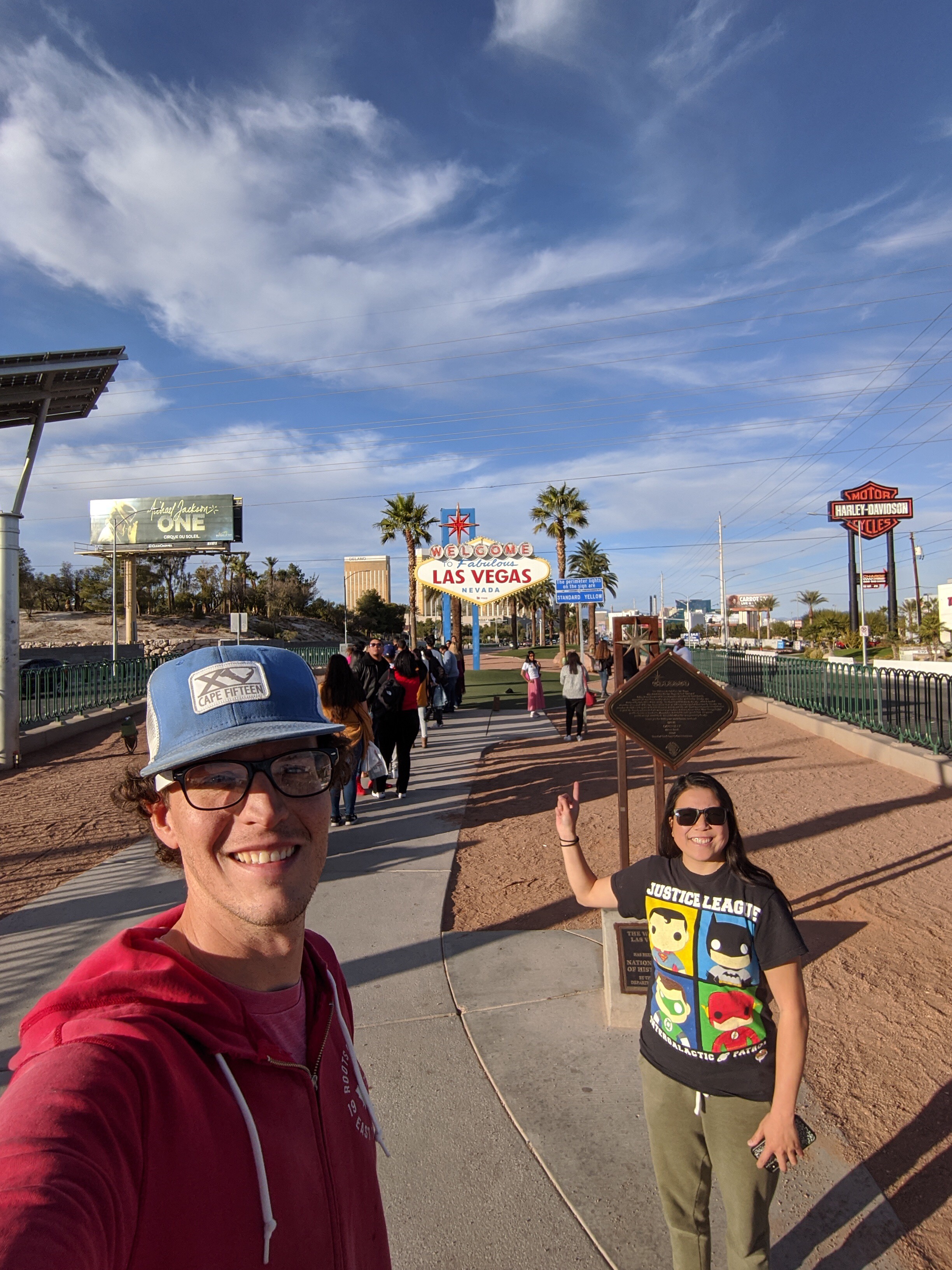 Both of us had been to Las Vegas before but neither of us had taken pictures in front of the infamous sign. Since we were nearby, we stopped by the Welcome to Las Vegas Sign. When we got closer to the strip, the amount of traffic started to buildup. A sign that we were in a major city again. When we got to the sign there was a line of people waiting to take a picture in front of the sign. We didn’t want to wait so here’s the result:
